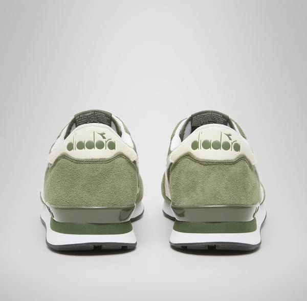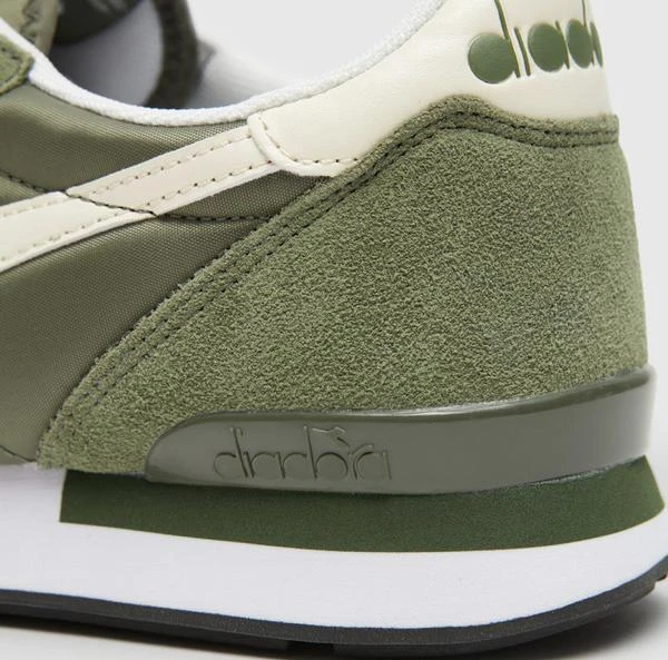 DIADORA CAMARO TRAINERS Retro running model derived directly from the 1985 sports catalogue, reproduced using an artful mix of nylon and suede, which are the same materials used for the original upper. Characterised by an E.V.A. shock-absorbing mid sole which guarantees maximum comfort. COLOUR: Olivine / Whisper White