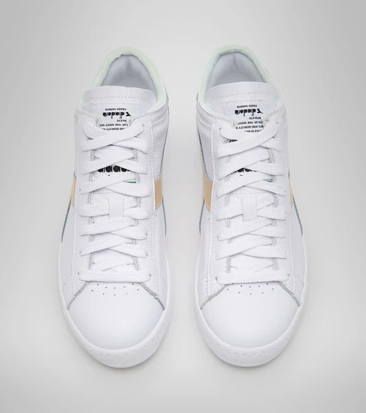 DIADORA GAME ROW CUT METAL WHITE/FROSTED ALMOND Game, the diadora trainer that is one of our biggest sellers, coming with a new sporty identity that is right on-trend. Game Row Cut Metal is the unisex sports shoe with a full-grain leather upper. Perfect for pairing with every outfit.