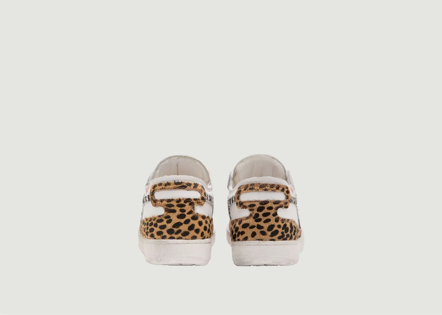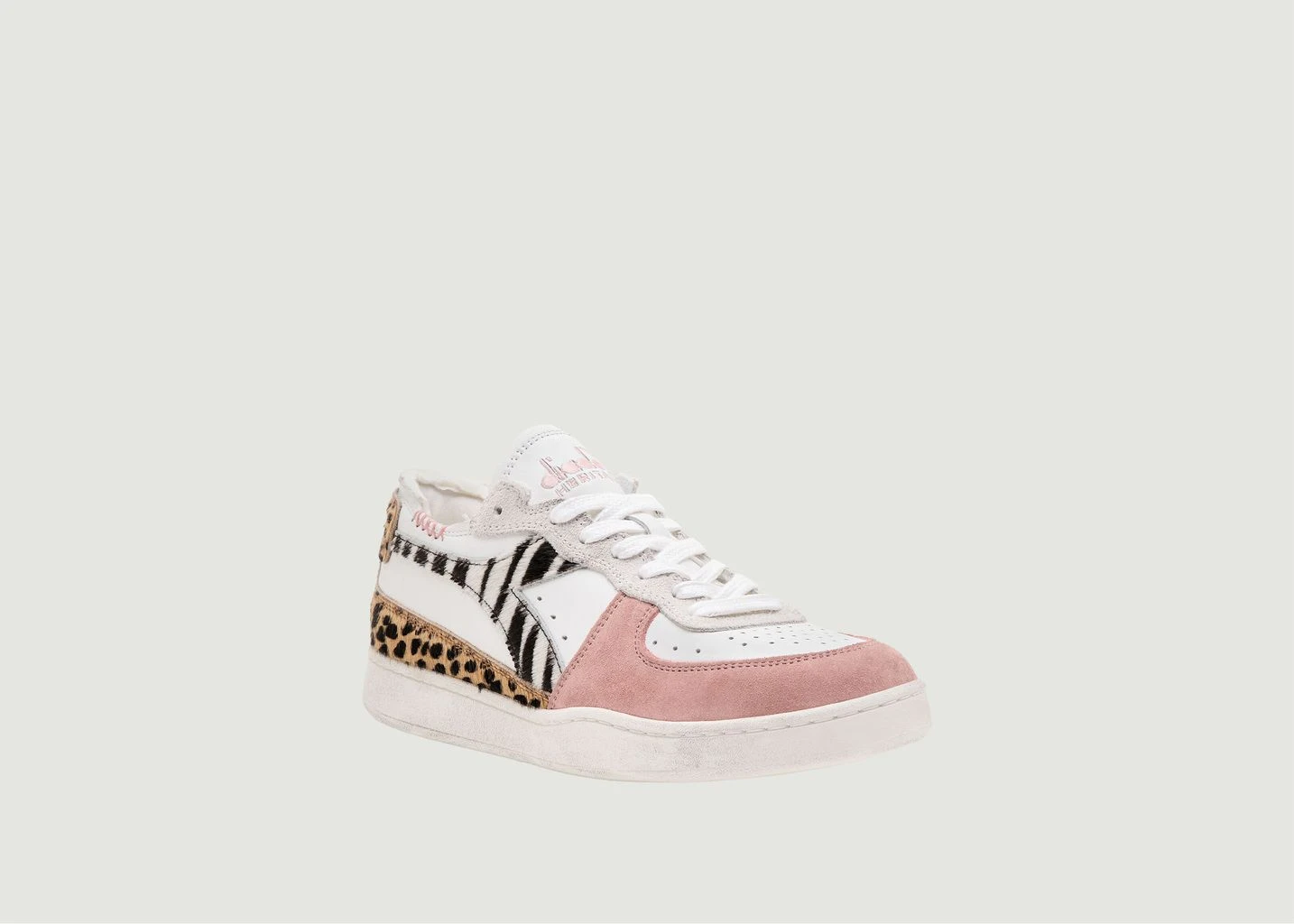 White leather and premium suede sneaker with animal graphics. Removable insole and rubber outsole. Waxed cotton laces. Fall for these sneakers with a feminine style and animal print. We like its premium leather and suede and its light pink color. Wear the MI Basket Row Cut Savannah WN with jeans and a thick wool sweater this winter for a dynamic and comfortable look.