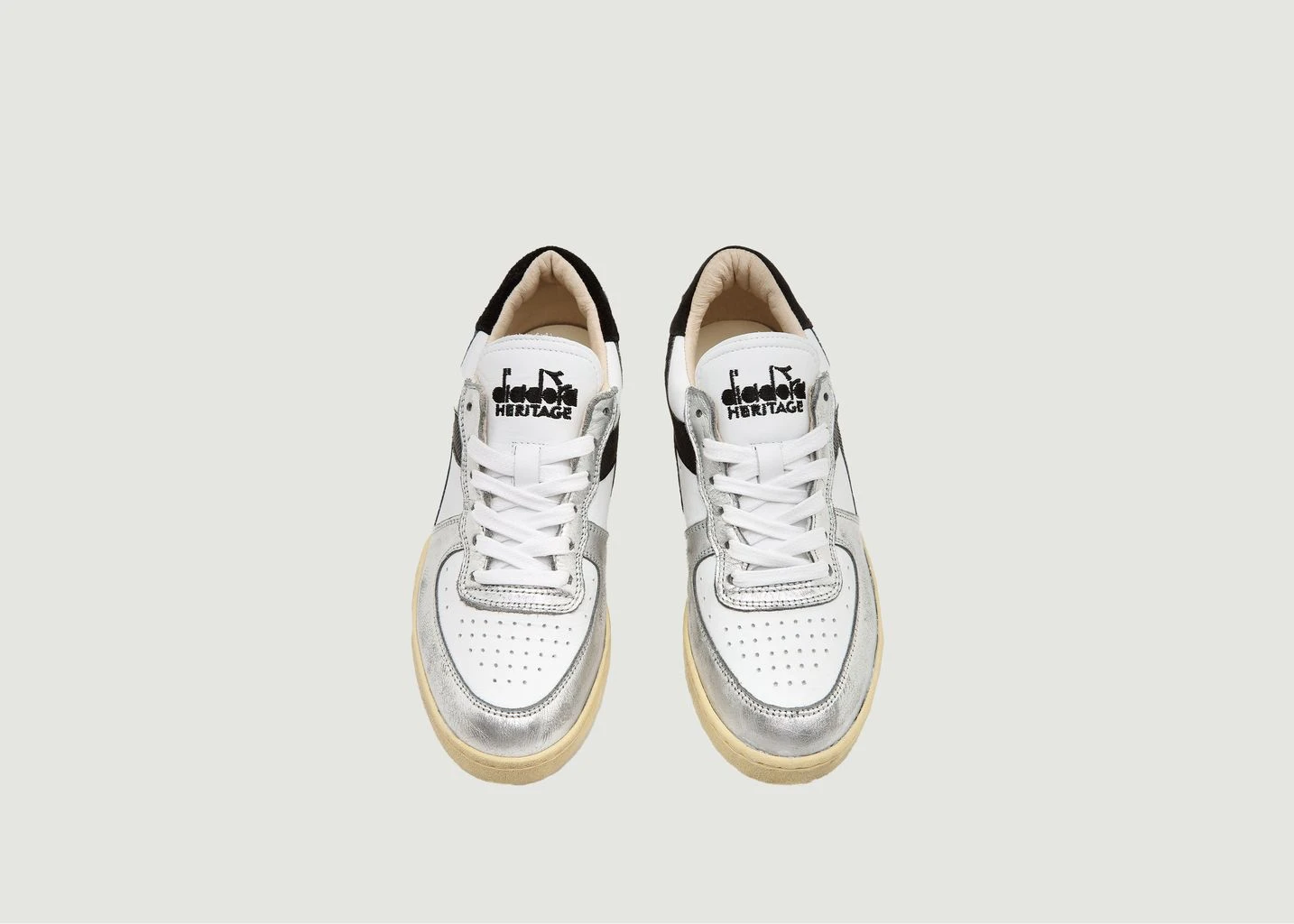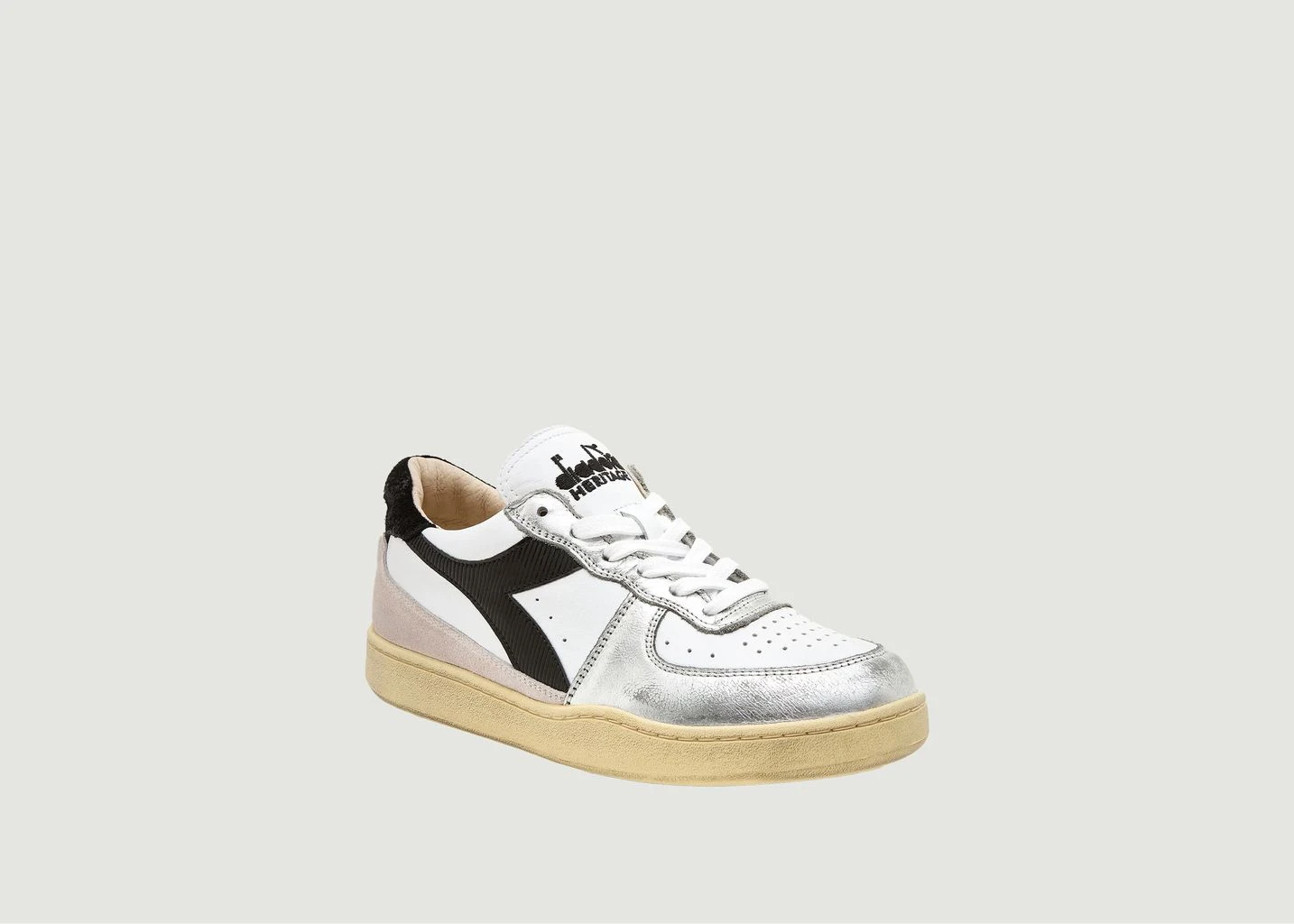 Sneakers in metallic leather, rubber sole. Details : Embroidered logo, Low top sneakers, Laces, Clean edge, Worn effect, Perforated. We are tempted by the sneaker which breaks the codes, by proposing a worn effect. We like the retro effect thanks to its sporty shape. Wear it to mark your style and your personality with these sneakers signed Diadora. The Mi Low Silver Used sneakers will perfectly match with a sportswear style.