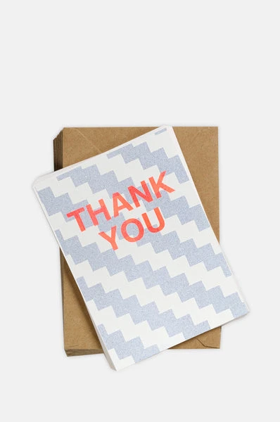 It is always good manners to write a thank you note and after a party or birthday, you may need to write a few. Adorned with pastel blue zigzags, these are a super fun way to show your gratitude. So cute in fact, why not send one to yourself? Card size: A6 Comes with a kraft envelope. Risograph printed in layers of colour, similar to the screen printing process, but instead using a specialised Riso Printer. Each print is unique and you will get certain areas of off-set printing which add to the charm and individuality.Soy inks and FSC card.