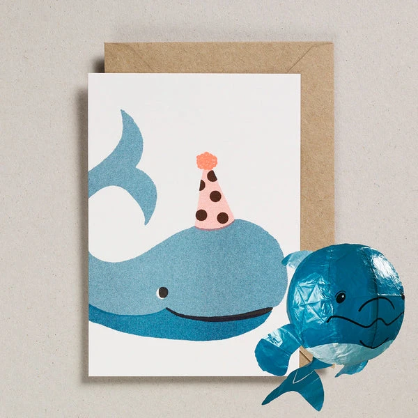 Risograph printed card with accents of fluorescent ink. Each card has a paper balloon inside that corresponds with the character on the front of the card. Blank inside. 105mm x 150mm