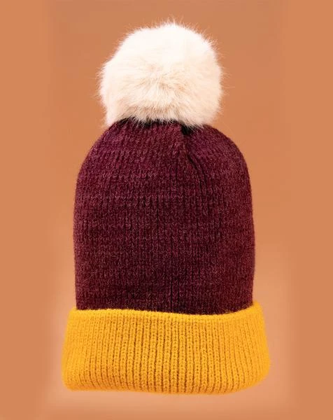 Powder Bonnie Pompom Hat Damson Mustard