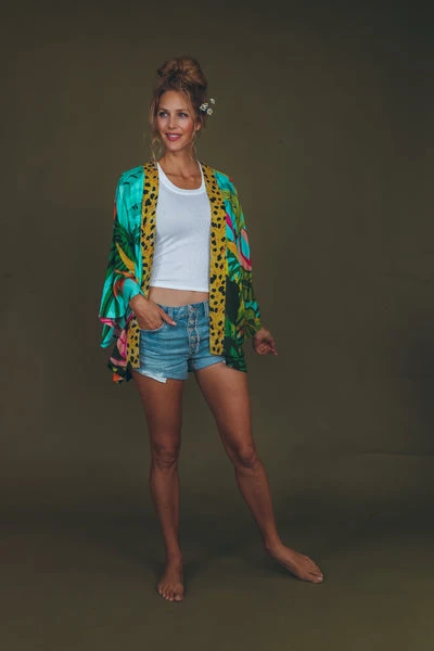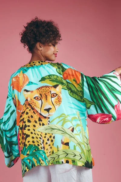 A glorious modal and viscose blend, this Cheetah Kimono Jacket is wild and wonderful – the perfect piece for throwing over your shoulders and hitting the town! Equally suited to wrap around your sleepwear – or to elevate your dinner party look, you will never want to take it off! Comes with exclusive limited-edition packaging which is fully recyclable. Cool Hand Wash Only, Cool Iron Only, Do Not Tumble Dry. Measurement: One SizeFabric: 50% Modal, 50% ViscoseComplimentary Gift Packaging IncludedSKU: PKJ6