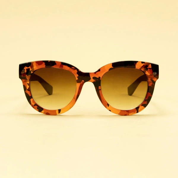 Elena Limited Edition Sunglasses in Amber. Sophisticated with 50s style flare, these Elena sunglasses are a fantastic all rounder. The Chunky, bold frame is perfect if you are looking for something resilient! All of our sunglasses come with a complimentary, limited edition collapsible sunglasses case and a beautiful cloth, making it easier than ever to look after you shades anywhere. Category 3 Protection – These sunglasses are tested to BS EN ISO 12312-1:2013 with high sun glare protection and good UV protection. Size: W – 14.4cm, H – 5.6cm, L – 14.2cm Fabric: 100% Polycarbonate