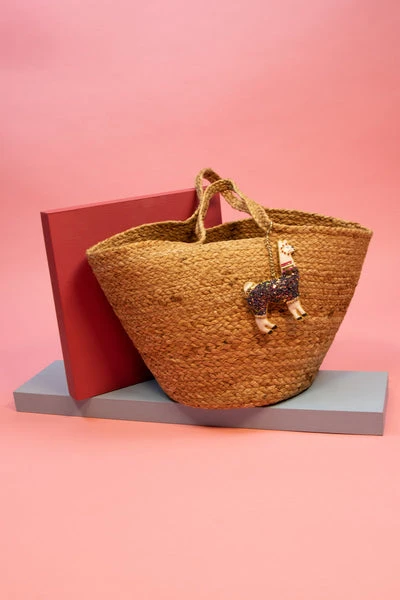 Our Mila bag will compliment any summer look. A day or evening look, you can’t go wrong, and the Llama charm adds a quirky touch! Measurement: Length – 46cm Width – 20cm Height – 23cm Fabric: 100% Jute