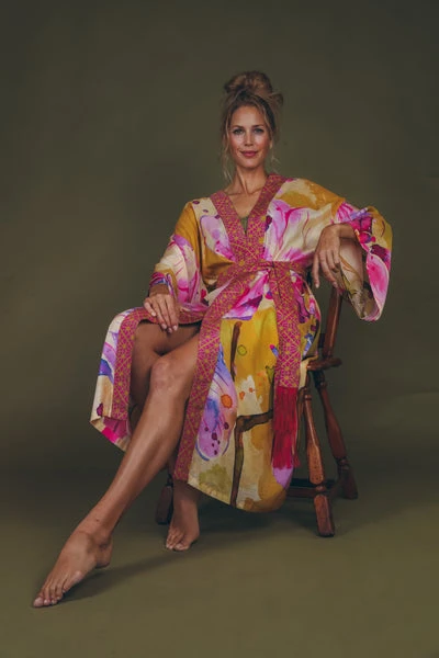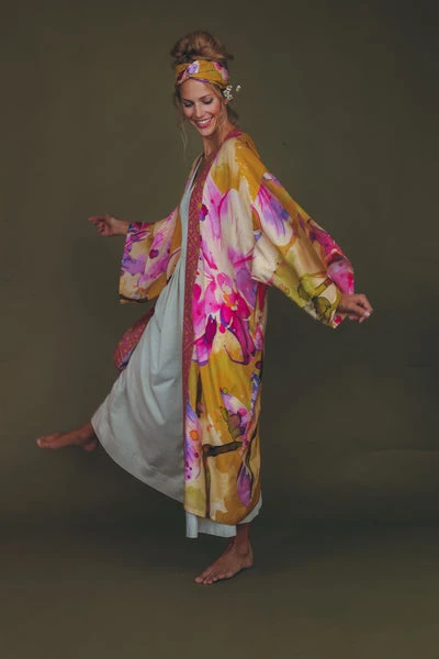 Powder Orchid Kimono Gown – Mustard