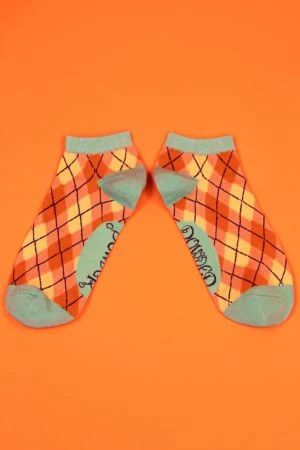 Preppy chic your thing? these will look perfect paired with some Stan Smith’s or some 90s platform trainers. These Pink Argyll trainer socks come with complimentary Powder packaging.