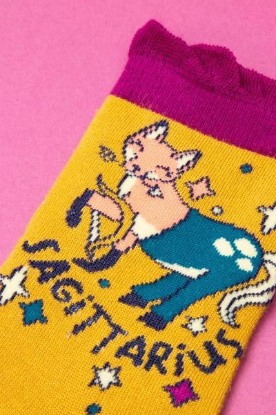 Powder Sagitarius Zodiac Ankle Sock in mustard. Zodiac Ankle socks have designs for every star sign in gorgeous colours and made from supersoft bamboo fibres. These cute designs are perfect for gifting, as each pair comes with a gorgeous gift bag for that special someone. As long as you remember their birthday, you can send something thoughtful and practical! See the images to check which star sign matches their birthday! Women’s 4-9 UK 65% Bamboo, 15% Cotton, 10% Nylon, 10% Elastane Machine wash at 30 degrees